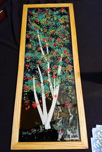 I love to see other people's artwork. In these pictures I have small plates by an incredibly talented ceramic artist named Kym Owens and a galaxy pendant by Eric Mort. These should have places to be displayed, and they will eventually. But, when I see them in this clutter, there is a spark of happy inside my reaction.